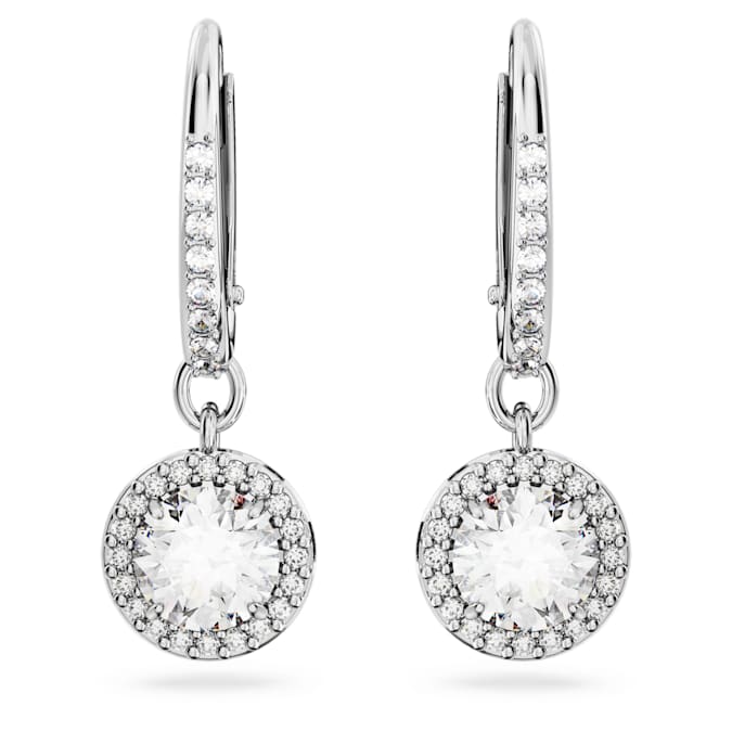 Una Angelic drop earrings Round cut, Pavé, White, Rhodium plated