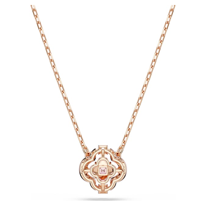 This Una necklace sparkles with a charming floral design. From our much-loved Sparkling Dance collection, it features a pink dancing stone in the shape of a clover, which appears to float inside its setting and is complemented by the rose-gold tone plated chain. This piece of jewelry will pair well with casual outfits and is a great gift for a special someone.