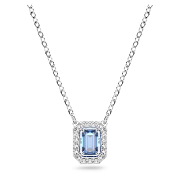 Expertly engineered to create a dancing stone mechanism, this alluring pendant moves with you. Featuring an elegant, blue, octagon-cut stone at its core, it’s elegantly framed with smaller crystals and a rhodium-plated setting. Style yours with a simple, white T-shirt and jeans to turn an everyday look into something extraordinary. This pendant is part of the Una family, designed by Creative Director Giovanna Engelbert for Collection II.