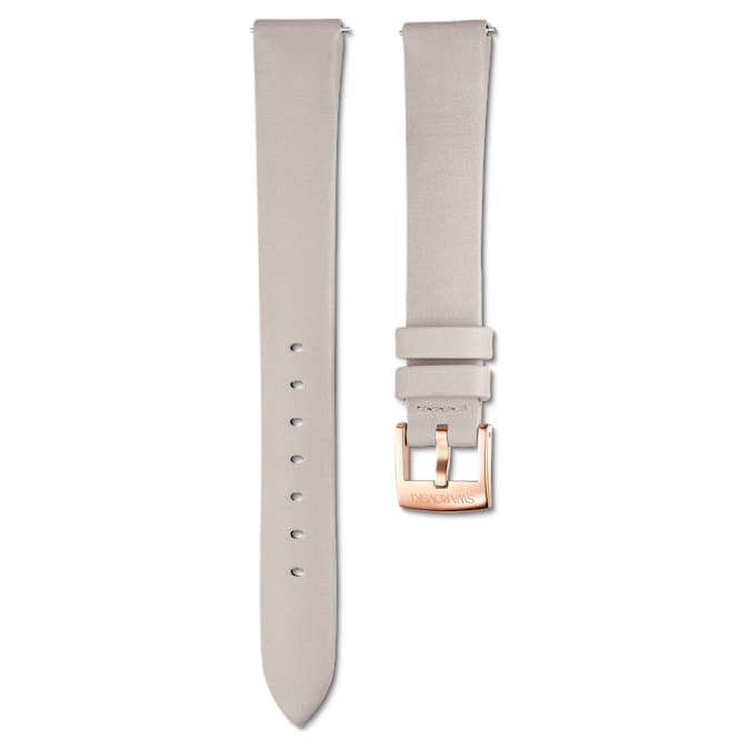 This Italian calf-skin grey leather strap by Swarovski adds glamorous style to your watch. The smooth strap features a buckle with a rose gold-tone finish and a quick-release spring bar allowing for an easy fit to your Swarovski watch. It is 14mm wide and 16cm long, and compatible with Crystalline Aura, Crystalline Pure, Crystal Frost, Crystal Lake and Graceful Mini watches.