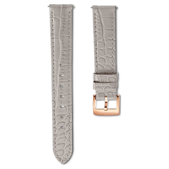 Crafted in Italian calf-skin leather, this grey strap by Swarovski adds glamorous style to your watch. The crocodile-embossed design features a buckle with a rose gold-tone finish and a quick-release spring bar, allowing for an easy fit to your Swarovski watch. The strap is 15mm wide and 16cm long, and is compatible with Passage Chrono watches.
