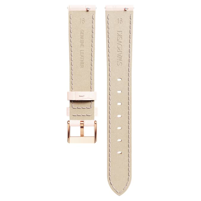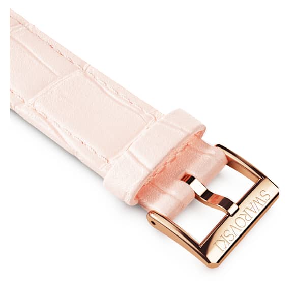 This Italian calf-skin pink leather strap by Swarovski adds glamorous style to your watch. The crocodile-embossed strap features a stainless steel buckle with a rose gold-tone finish and a quick-release spring bar allowing for an easy fit to your Swarovski watch. It is 16 mm wide and 16 cm long, and is compatible with watches including Matrix Chronograph, Crystalline Glam, Octea Chrono, Octea Nova, Crystalline Wonder, Octea Moon, and Matrix Tennis Chrono.