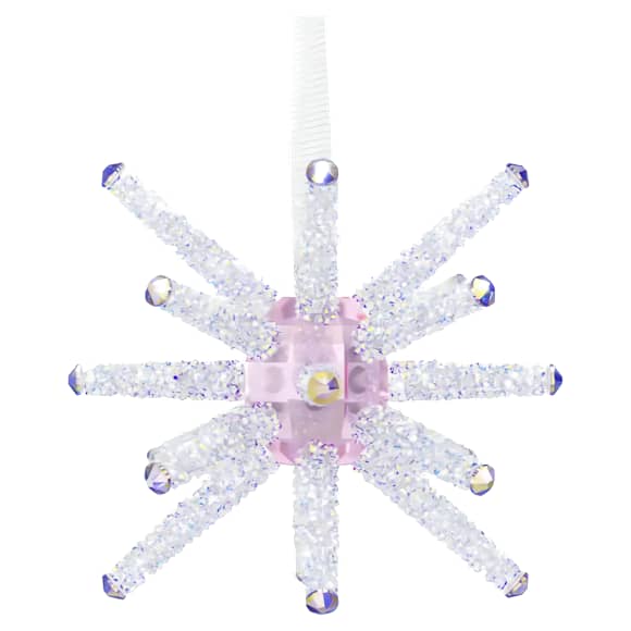 Step into the enchanting Land of Oz with this captivating ornament inspired by Universal Pictures’ Wicked. To capture every intricate detail of Glinda’s wand, the ornament is beautifully brought to life with 443 facets, a dramatic pink center, and shimmering peaks made from Crystal Rocks. Suspended from a white grosgrain ribbon, the ornament makes a bewitching gift for any Wicked fan. Decoration object. Not a toy. Not suitable for children under 15.