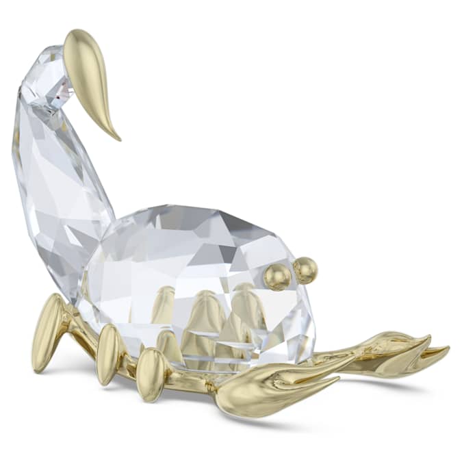 Taking notes from the cosmos, this fearless Scorpio figurine is a wondrous tribute to the zodiac. The astrological-inspired design combines precision cutting with engraved gold-tone metal, featuring 143 facets that represent a scorpion proudly displaying its sting. Gift this special piece to yourself or a Scorpio who is celebrating their birthday. Decoration object. Not a toy. Not suitable for children under 15.